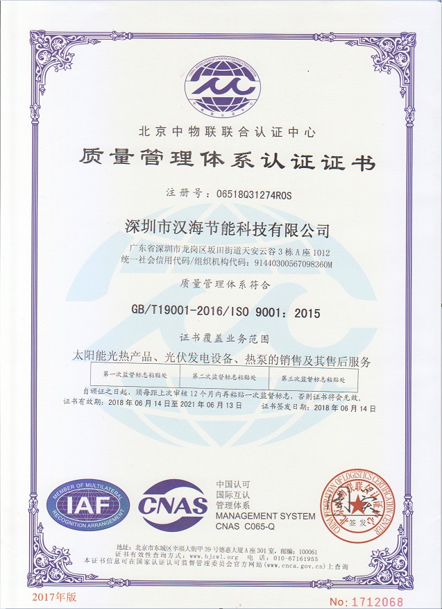 深圳市漢海節(jié)能科技有限公司成立于2011年,注冊(cè)資金6000萬(wàn)元,總部設(shè)在深圳,是一家集設(shè)計(jì)、研發(fā)、施工于一體的專(zhuān)業(yè)化從事太陽(yáng)能中央熱水工程、熱泵中央熱水工程、中央空調(diào)、光伏發(fā)電、水處理等新能源及節(jié)能環(huán)保行業(yè)的綜合服務(wù)商和工程商。在將近10年的發(fā)展歷程中,始終走在行業(yè)發(fā)展的前沿,是專(zhuān)業(yè)從事太陽(yáng)能光熱、光伏,空氣源、太陽(yáng)能熱水工程、水源熱泵,中央空調(diào),水處理產(chǎn)品的設(shè)計(jì)、安裝、售后服務(wù)為一體的高新技術(shù)企業(yè);是專(zhuān)業(yè)提供太陽(yáng)能中央熱水工程、熱泵中央熱水工程、中央空調(diào)工程、光伏發(fā)電工程、水處理工程、太陽(yáng)能熱水工程等全面解決方案的供應(yīng)商和工程商,產(chǎn)品涵蓋太陽(yáng)能集熱器、空氣源熱泵、水源熱泵、中央空調(diào)、光伏組件、太陽(yáng)能熱水工程等,是新能源的倡導(dǎo)者和推動(dòng)者。公司成立以來(lái),始終秉承“誠(chéng)信、責(zé)任、專(zhuān)業(yè)、高效”的服務(wù)宗旨,以市場(chǎng)需求為導(dǎo)向,以為客戶(hù)創(chuàng)造價(jià)值為己任的精神,不斷開(kāi)拓創(chuàng)新,通過(guò)多年的快速發(fā)展,公司綜合實(shí)力躍居行業(yè)前列。漢海擁有一支經(jīng)驗(yàn)豐富、善打硬仗的專(zhuān)業(yè)高效團(tuán)隊(duì);擁有一批專(zhuān)業(yè)的高級(jí)工程師、中級(jí)工程師、二級(jí)建造師、造價(jià)工程師、電氣設(shè)計(jì)師、給排水設(shè)計(jì)師;擁有一批機(jī)電、安防、水、電等專(zhuān)業(yè)技術(shù)施工和售后人員,配備先進(jìn)齊全,實(shí)力雄厚,技術(shù)領(lǐng)先。漢海以質(zhì)量樹(shù)信譽(yù)、以工藝立標(biāo)桿、以管理創(chuàng)效益、以服務(wù)得人心,工藝水平在業(yè)界獨(dú)樹(shù)一幟,成為行業(yè)模仿的典范。漢海承建的機(jī)電工程(設(shè)計(jì)、施工)涉及星級(jí)酒店、賓館、高檔辦公樓、花園別墅、住宅小區(qū)、學(xué)校、水療中心、工廠等各種類(lèi)型的工程,工程項(xiàng)目遍布全國(guó)各地。漢海將致力于成為全球信賴(lài)的新能源綜合服務(wù)商,為客戶(hù)提供新能源的全方位解決方案。未來(lái),漢海將依托國(guó)家政策,積極開(kāi)拓粵港澳大灣區(qū)、中國(guó)特色社會(huì)主義先行示范區(qū)市場(chǎng)及“一帶一路”沿線國(guó)際市場(chǎng),推動(dòng)新能源的新輝煌。